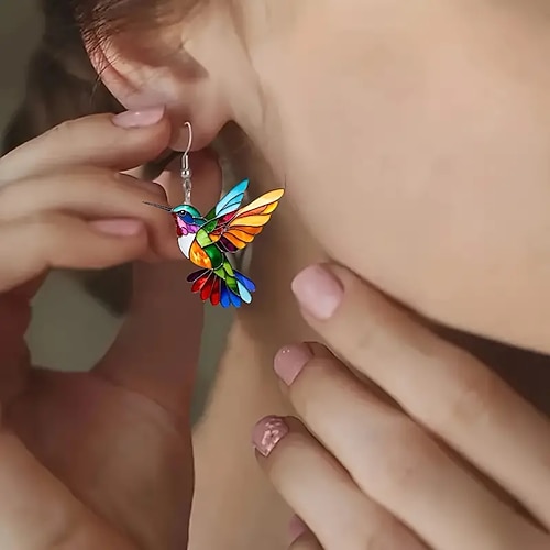 orecchini colorati a forma di colibrì, orecchini pendenti a forma di uccello in acrilico 2D, gioielli retrò alla moda per le donne, nuovi orecchini alla moda del 2024
