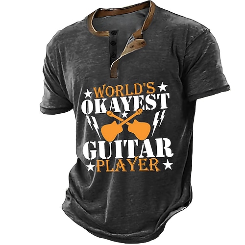 Per uomo Festival musicale Chitarra Maglietta Maglia Henley Manica Corta Designer Retrò Vintage Henley Casuale Quotidiano Streetwear Estate Primavera Nero Verde Blu marino Henley Maglietta Henley
