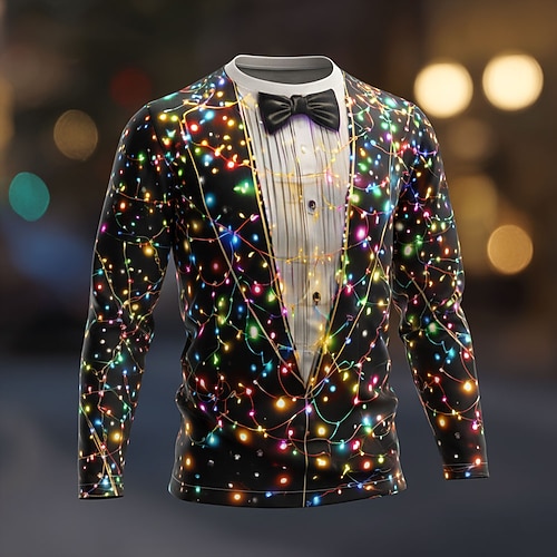 Natale Per uomo Costume di Natale Smoking Maglietta Manica Lunga maglietta Stampa 3D Girocollo Camicia Moda Essenziale 3D Streetwear Casuale Quotidiano Nero 1 Nero 3 Nero 2 Estate Primavera