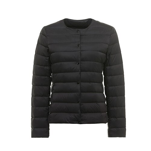 Per donna Giacca Piumino Confortevole Traspirante Cerniera Tasca Casual Semplice Vacanza Streetwear Casuale Abbigliamento quotidiano Monopetto Corto Collo ripiegato Vestibilità regolare Manica Lunga