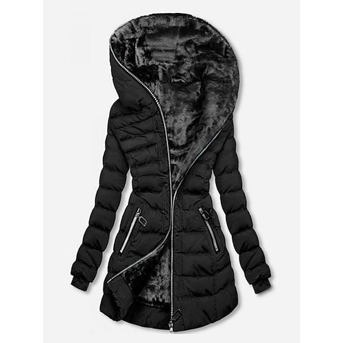 Per donna Giacca Piumino Cappotto Caldo Confortevole Cerniera Moda Semplice Vacanza Streetwear Abbigliamento quotidiano Cerniera Lungo Con Cappuccio Vestibilità regolare Manica Lunga Capispalla Nero