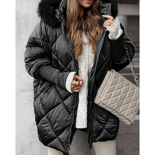 Per donna Cappotto Invernale Giacca Piumino Giacca con Cappuccio Caldo Confortevole Cerniera Tasca Collo in Pelliccia Casual Semplice Vacanza Abbigliamento quotidiano Uscire Weekend Lungo Con