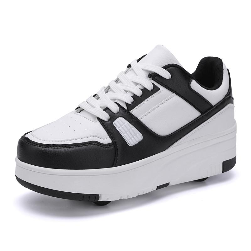 29-40 Kinder Vier-Rad Demontage Flache Schuhe Runaway Schuhe/Rad Skate Schuhe mit Rädern für Frauen cm weiß