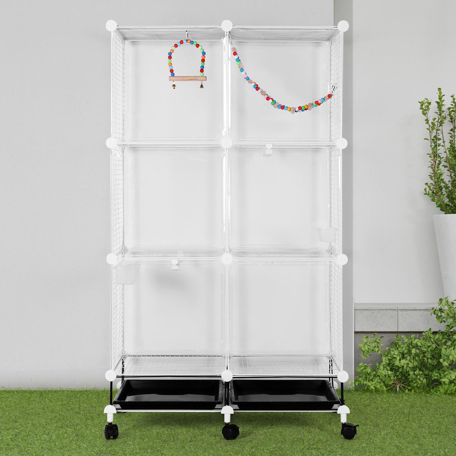 Bred fågelbur på rullande stativ med hjul och bricka Gunga Stege Stort fågelhus för papegojor Nymfparakiter Konurer Undulat Kanariefågel Finken svart
