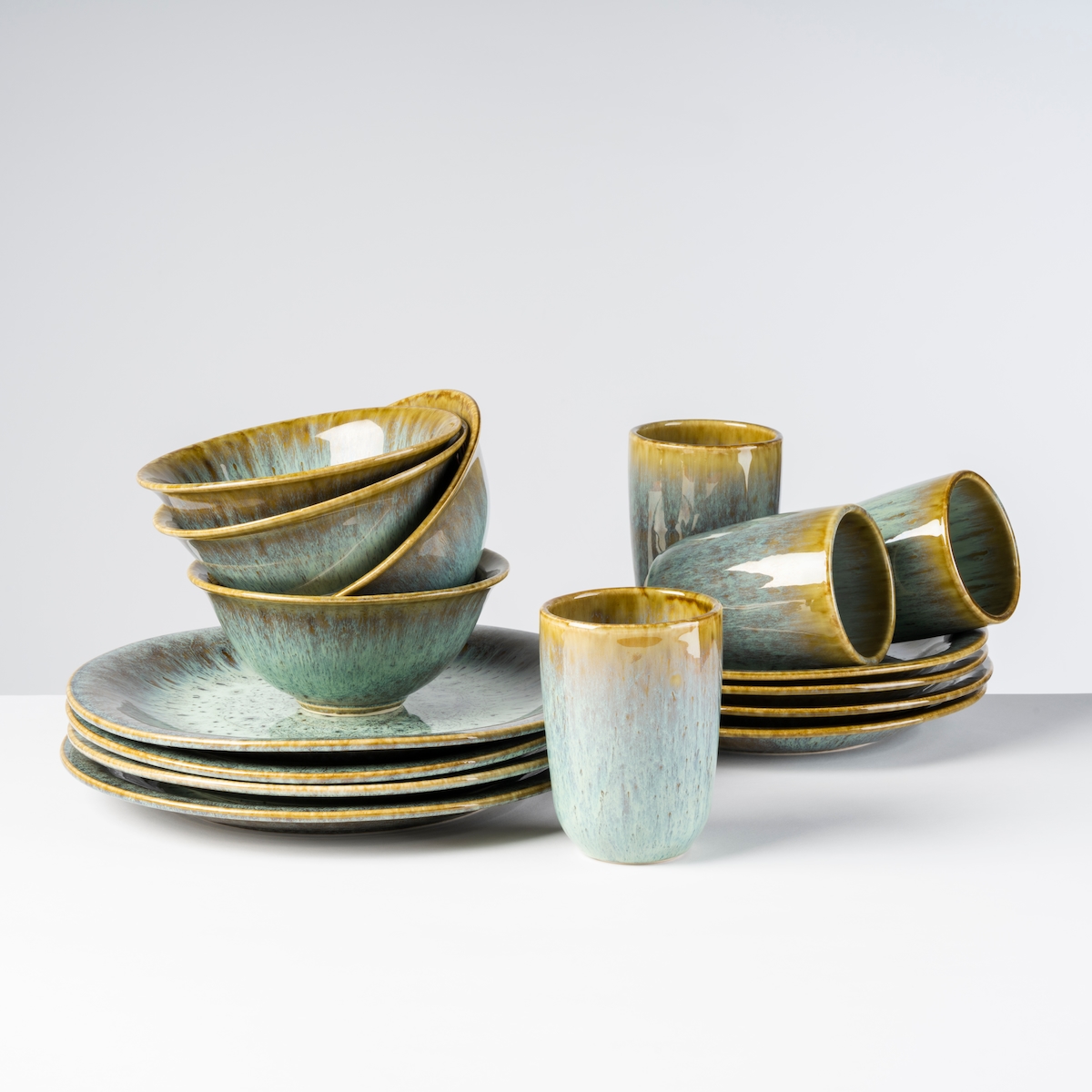 Gipfelstück Kombiservice 16-tlg für 4 Personen mit braunem Rand postsicher, Serie FLUSSUFER