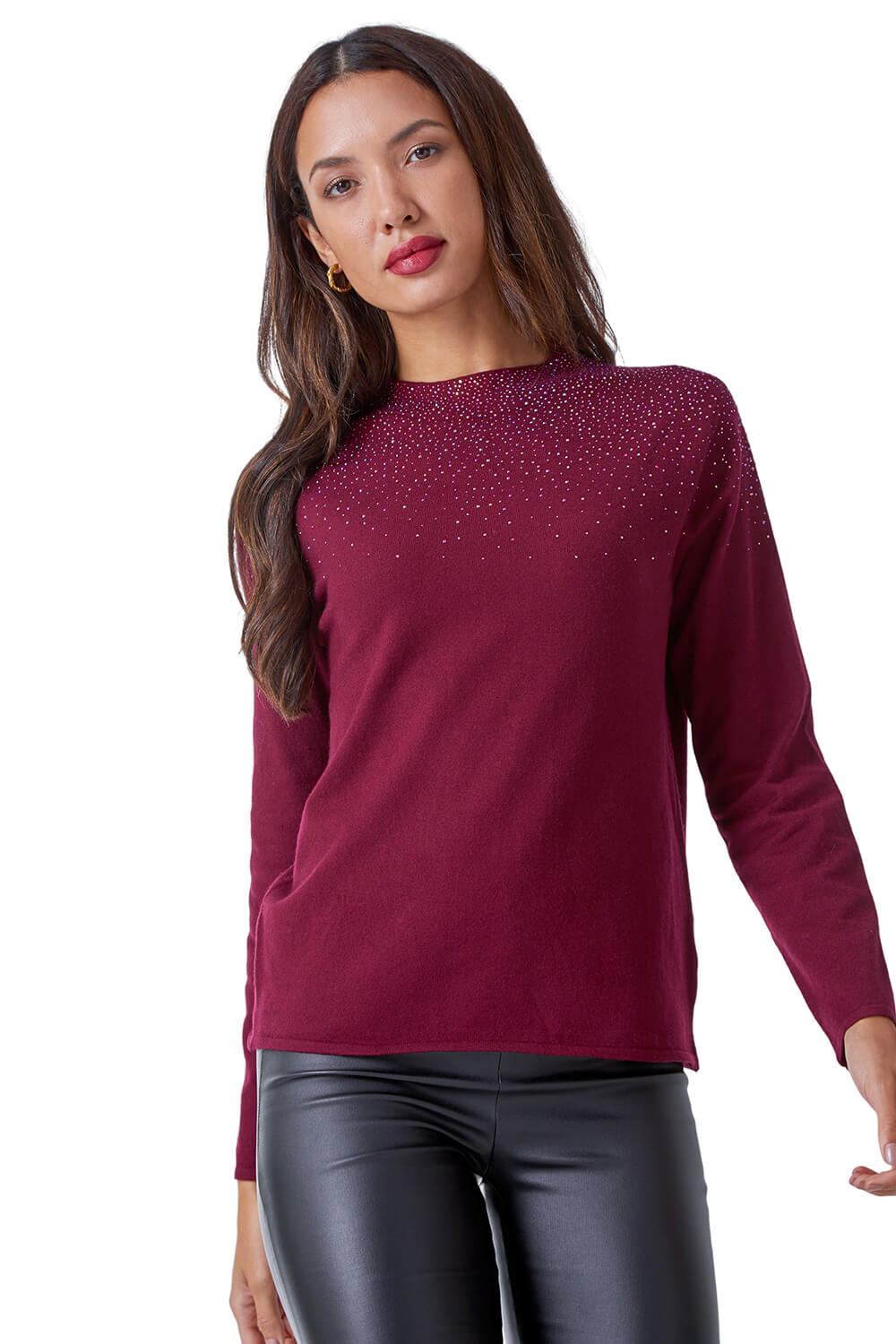 Roman Womens Diamante Long Sleeve Jumper - Red - Size 16 UK | Roman Sale | Discount Designer Brands