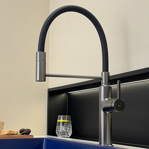 rubinetto da cucina tirare donw beccuccio ad arco alto, rubinetti miscelatori lavello monocomando girevoli a 360 gradi, rubinetto da cucina con tubo dell'acqua calda e fredda