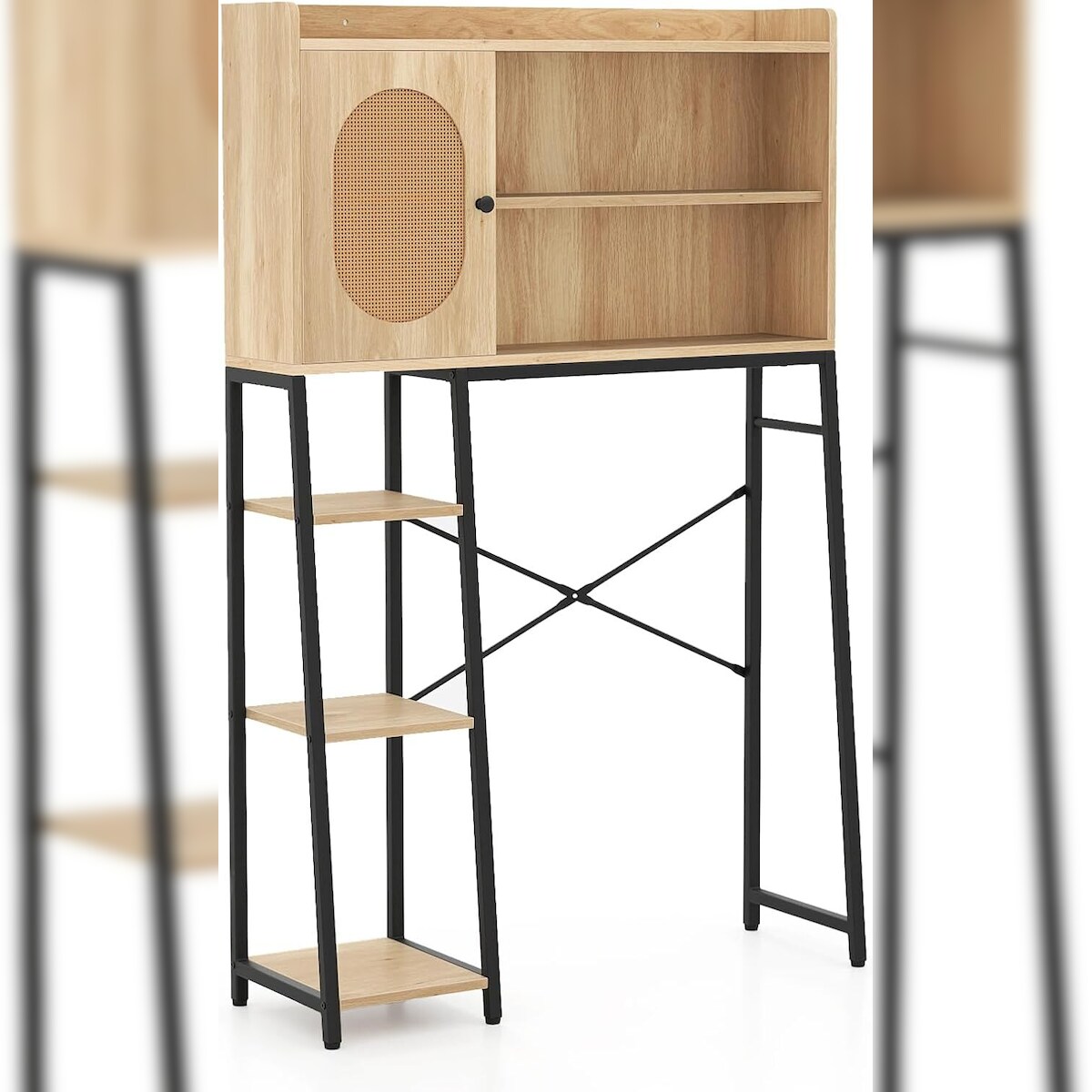 COSTWAY Toiletten Schrank mit PE Rattan Tür, Toiletten Regal mit Verstellbarem Regal & Aufbewahrungsfächern