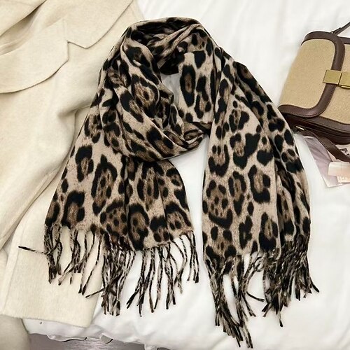Per donna Sciarpa rettangolare Streetwear Quotidiano Data Grigio Beige Sciarpa Leopardo