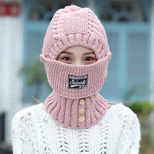 Cappello lavorato a maglia con protezioni per le orecchie, berretto invernale da donna, caldo, foderato in pile, sciarpa, cappello lavorato a maglia spesso, mascherina staccabile, accessori per
