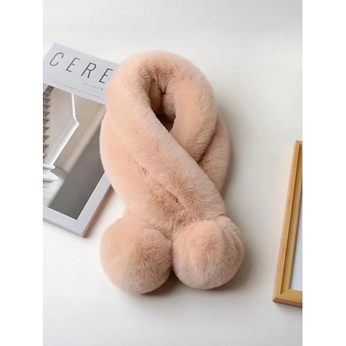 sciarpa natalizia da donna in pelliccia sintetica di coniglio con pompon, accessorio invernale morbido e accogliente per feste e regali