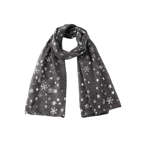 sciarpa natalizia da donna con fiocchi di neve, design festoso rosso e bianco con fiocchi di neve metallizzati, morbido materiale in poliestere, perfetta per le feste e per l'abbigliamento invernale