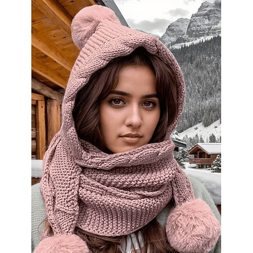 sciarpa natalizia con cappuccio in maglia da donna - foderata in pile caldo, dettaglio pompon, opzioni multicolori per la moda invernale, perfetta come regalo per le feste e per le attività all'aperto