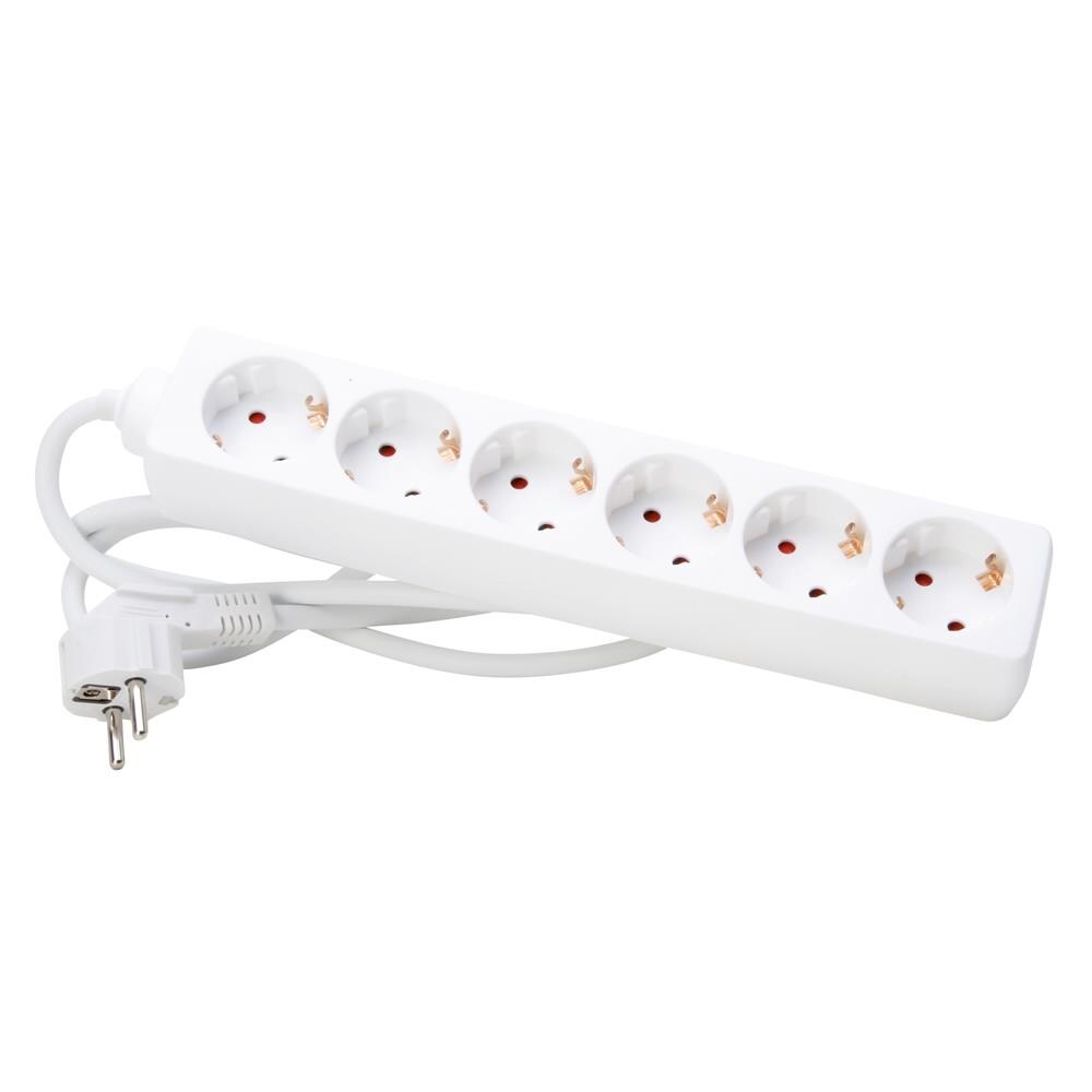 Steckdosenleiste 6-fach weiß 1,4m, mit 45° gedrehten Töpfen