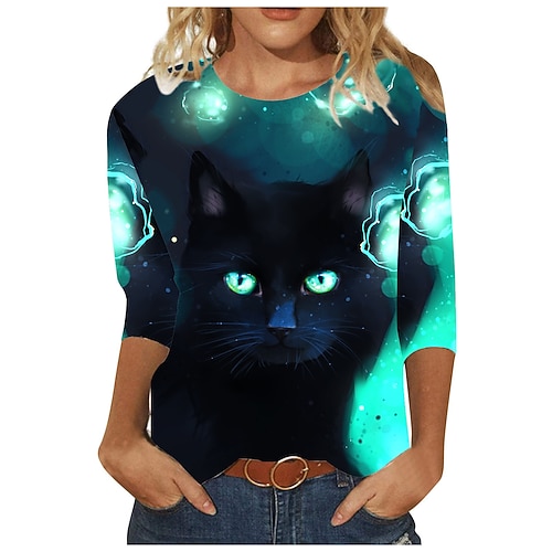 Maglietta da donna di San Patrizio Fortunata T shirt Tee Giallo Rosa Vino Foglia Leopardo Stampa Maniche Corte Casual Festività Base Collo Rotondo Vestibilità Normale Dipinto Floreale