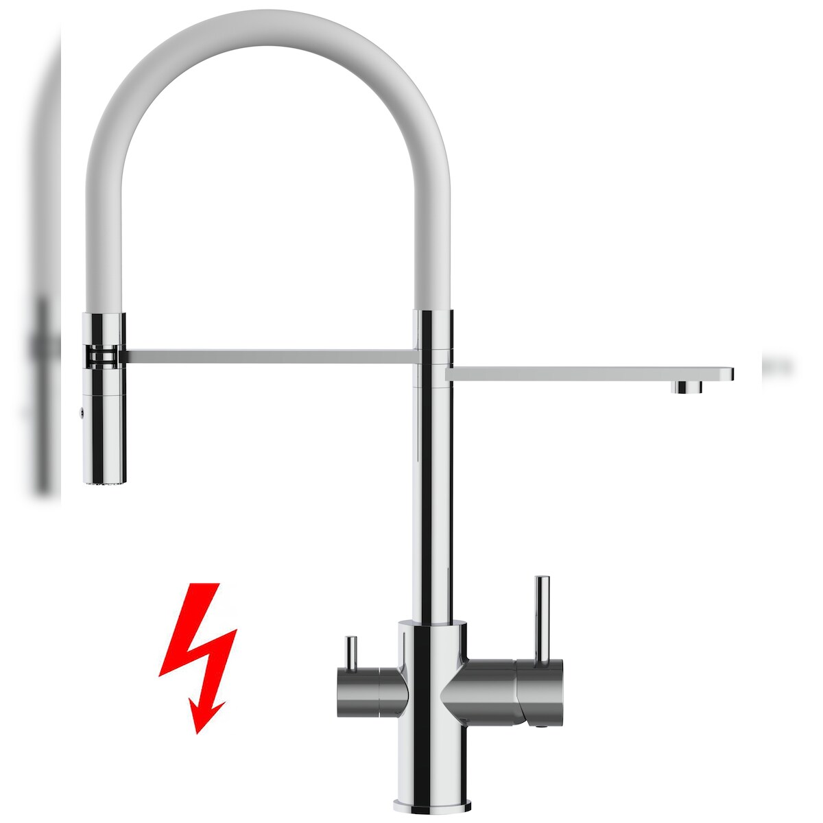 Vizio Niederdruck 3 Wege Wasserhahn Küchenarmatur Spültischmischer FL, Verchromt, mit 360° schwenkbarem Weiss Auslauf und abnehmbare 2 strahl Handbrause