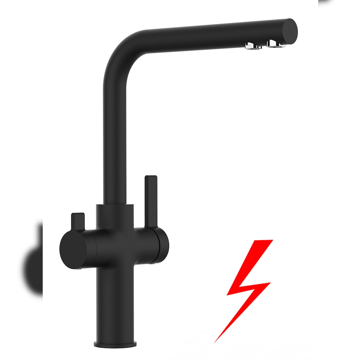 Vizio Niederdruck 3 Wege Wasserhahn Küchenarmatur Spültischmischer FC, Schwarz Matt mit 360° schwenkbarem L-Auslauf