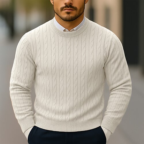 Per uomo Felpa Maglione A Coste Treccia Maglia Top Regolari Lavorato a maglia Slim Fit Semplice Girocollo Maglieria Contemporaneo Casuale Abbigliamento quotidiano Abbigliamento Autunno Tutte le