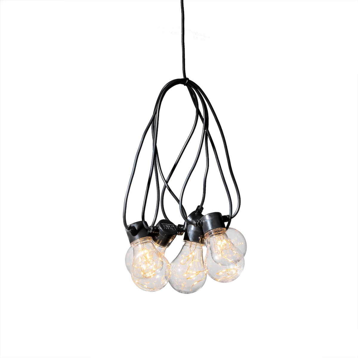 Konstsmide LED Biergartenkette, klar, mit LED Topfen, 10 klare Birnen / 100 bernsteinfarbene Dioden, 3V Außentrafo, weißes Kabel