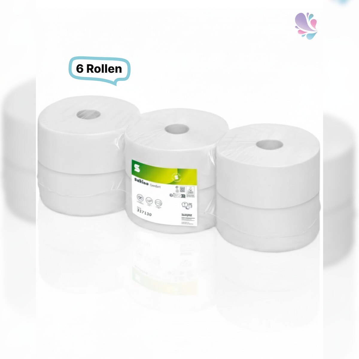 Blanc HYGIENIC JUMBO/ GIANT Comfort Toilettenpapier Großrollen, 6 Rollen, 2-lagig, 380m je Rolle, Recycling