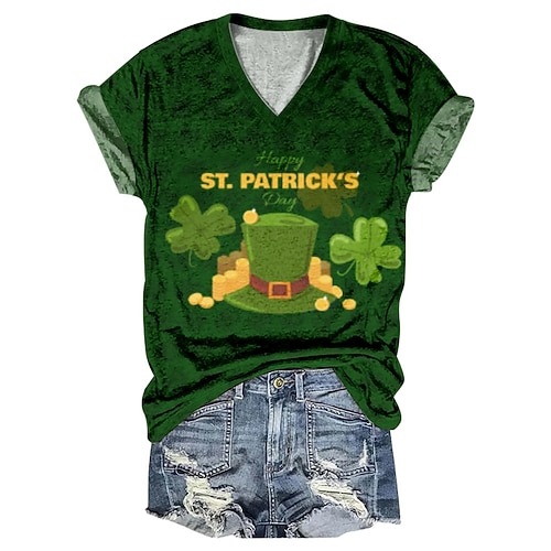 Per donna maglietta Trifoglio Festa di San Patrizio Informale Verde primavera Verde chiaro Verde militare Stampa Manica corta Di tendenza A V Standard Primavera estate
