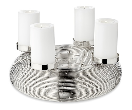 EDZARD Adventskranz Verona, Edelstahl glänzend vernickelt, Durchmesser 30 cm, für Stumpenkerzen ø 6 cm