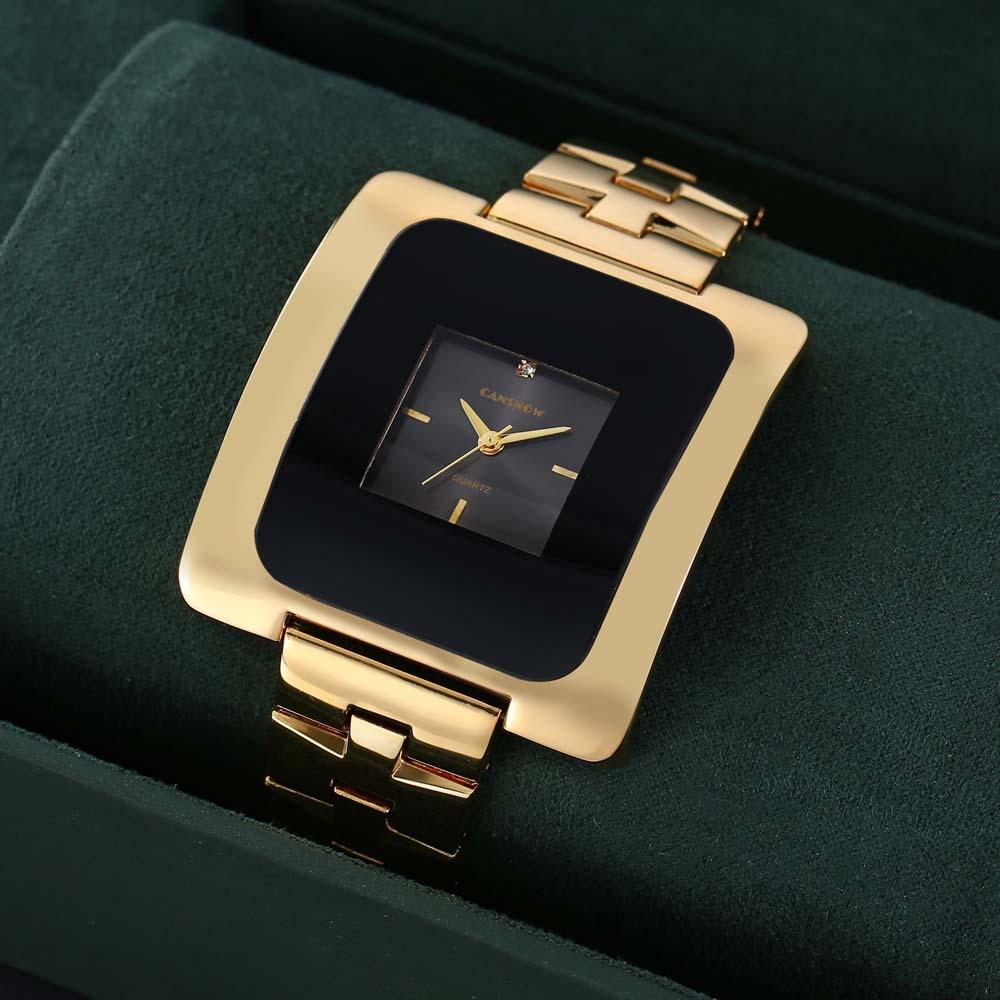 Hot Trend Watch with Simple Large Dial, Gold Silver Square Quartz for Women and Men, Steel Strap, Waterproof for Women and Clock gold/black