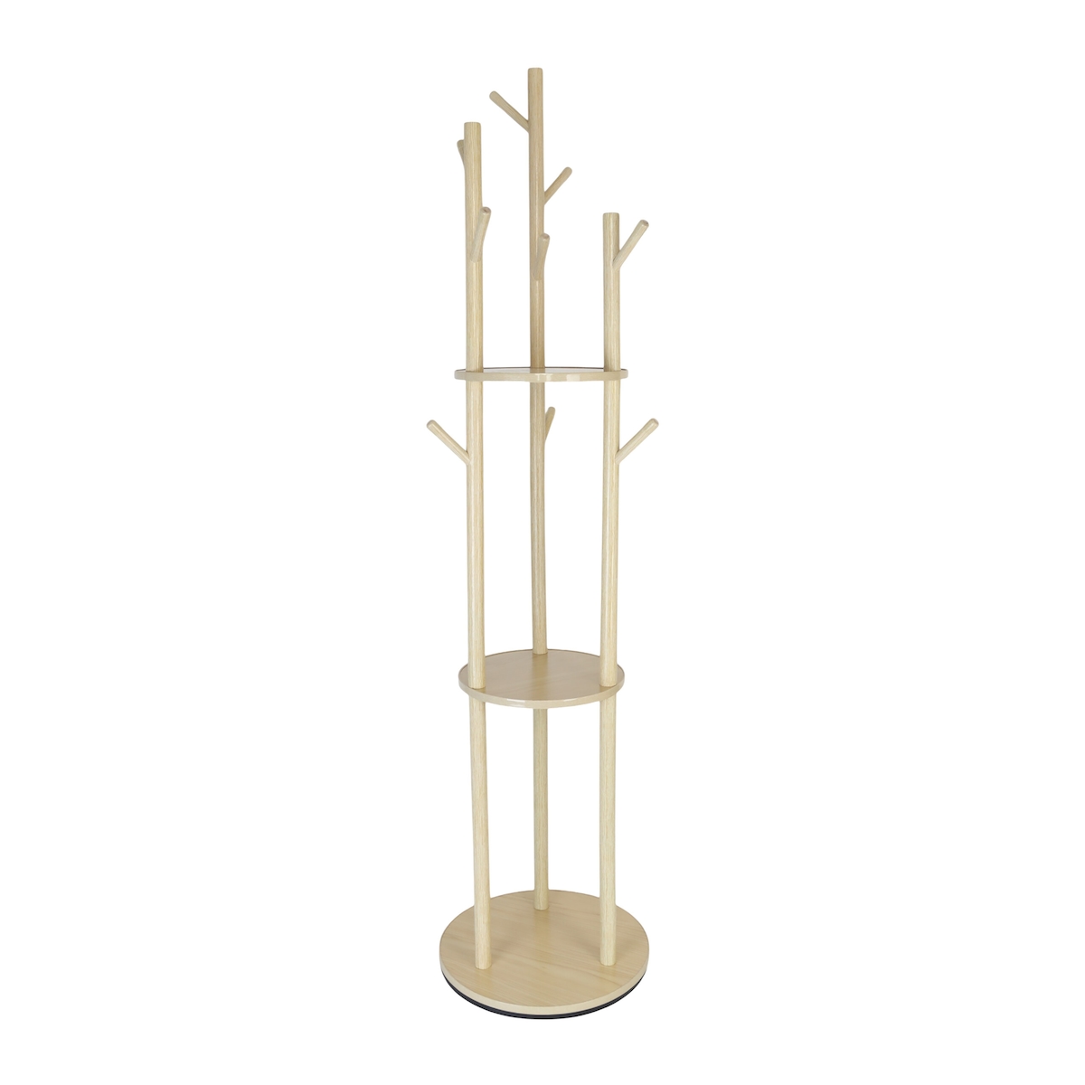 Relaxdays Garderobenständer, 360° drehbar, 9 Haken, 3 Ablagen, HxD: 165 x 40 cm, Kleiderständer, Kiefernholz , natur