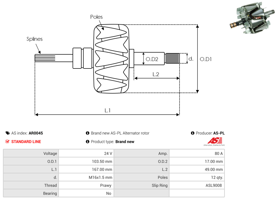 AS-PL Läufer, Generator AR0045 Universal 24V 80A 103,50mm für DAF 1687154