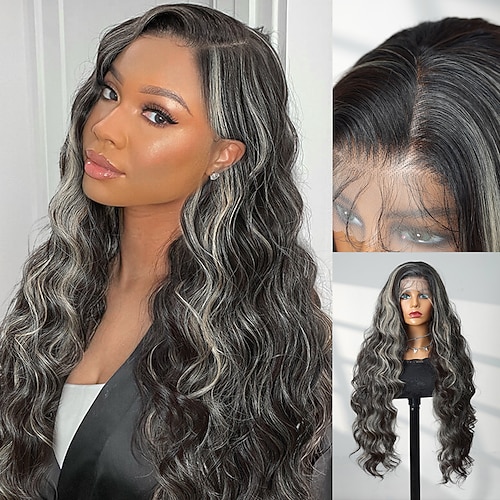 Parrucca in pizzo sintetico Ondulato naturale Stile 30 pollice Nero / Biondo Riga centrale 13x4 Fronte in Pizzo Parrucca Per donna Parrucca Marrone / Verde scuro