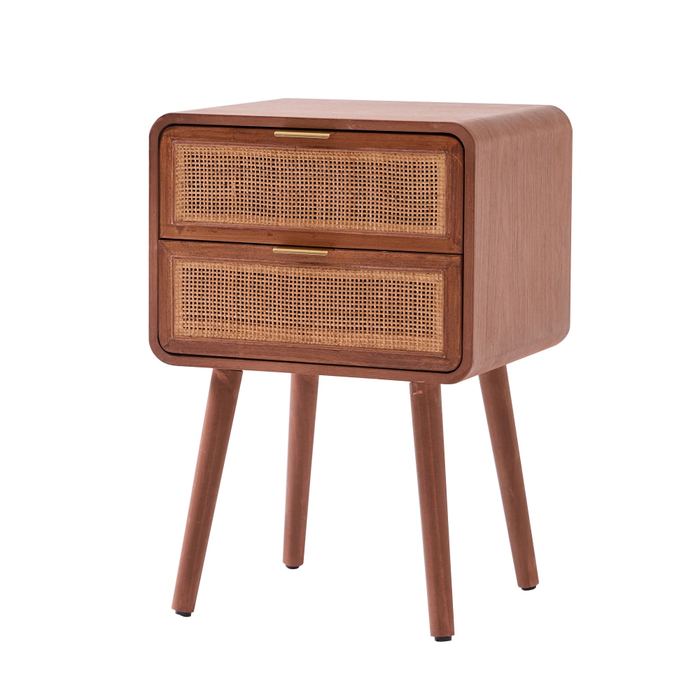 Table de chevet 2 tiroirs en rotin et bois de noyer