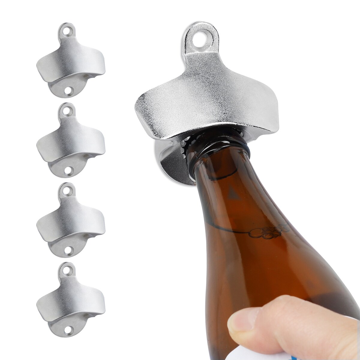 Relaxdays Wandflaschenöffner 5er Set, stabile Bieröffner zum Anschrauben, Wandöffner für Flaschen, Bar, Metall, silber