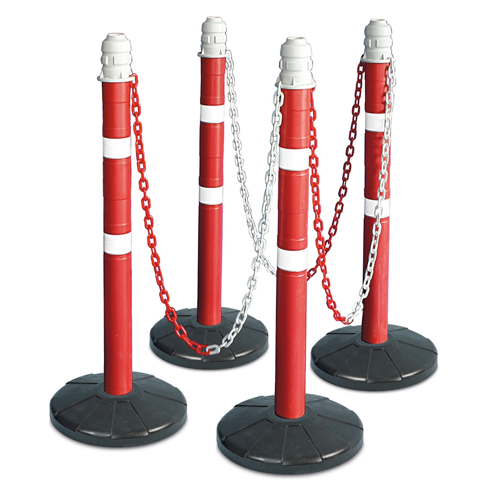 Kettenpfosten Set mit 4 Kettenständern, 6 m Kette, Rohr Ø 70 mm, Höhe 1000 mm, Standfuß aus Vollgummi