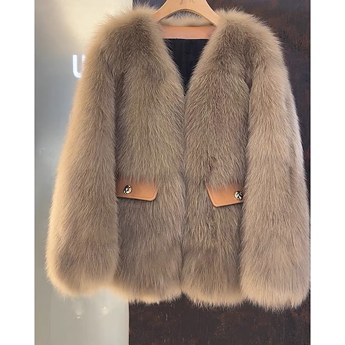 Per donna Cappotto in Pelliccia Sintetica Caldo Confortevole Tasca Strappati Testurizzato Elegante Semplice All'aperto Vacanza Uscire Weekend Regolare Scollo a V Vestibilità regolare Manica Lunga