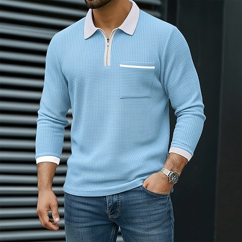 Per uomo Magliette Polo a Nido d'Ape Polo con zip a un quarto All'aperto Casual Zip a un quarto Manica Lunga Moda Moderno Tinta unica Testurizzato Lavorato a maglia Tutte le stagioni Vestibilit