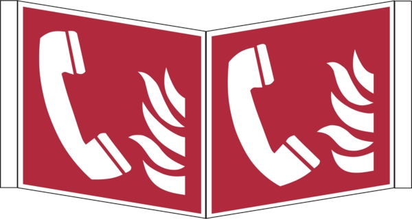 Brandschutzzeichen, Winkelschild Brandmeldetelefon F006 - ASR A1.3 (DIN EN ISO 7010) - 200x200x0.6 mm Aluminium glatt, nachleuchtend