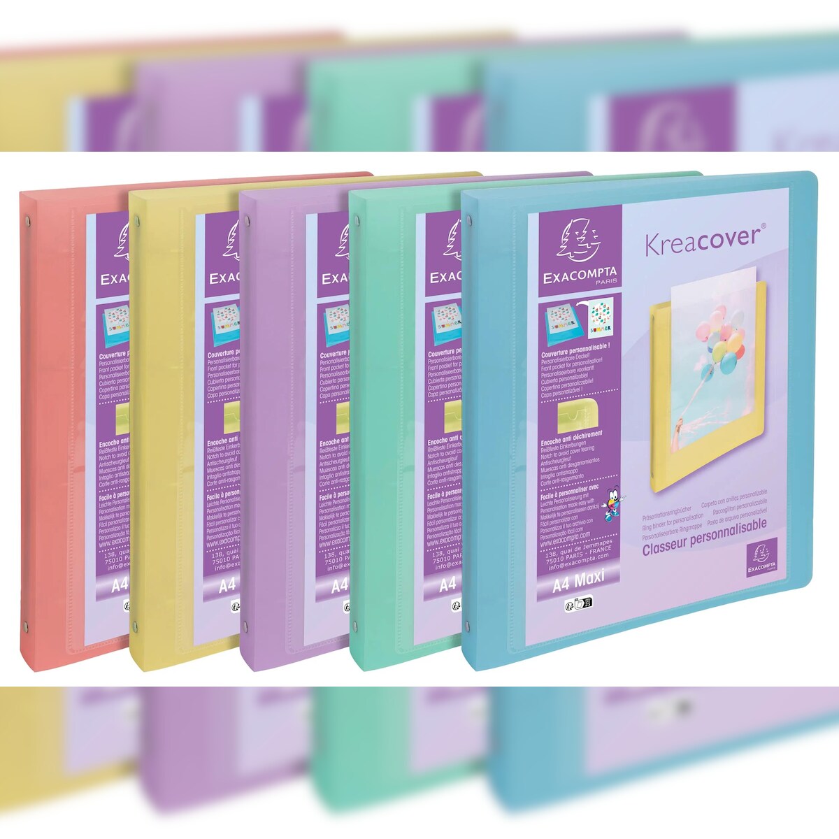 Exacompta 51779E 15x Ringbuch A4 PP, 4 Ringe 30mm, Kreacover Pastell - Farben sortiert