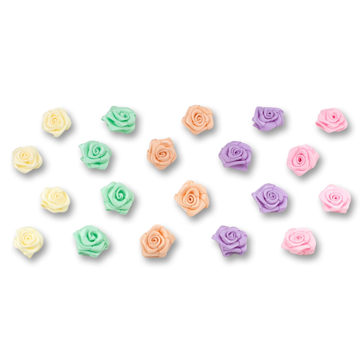 Creativery 20 Satinrosen 15mm Kleine Rosenköpfe Stoffrosen Deko Satinröschen Minirosen Pastell Mix