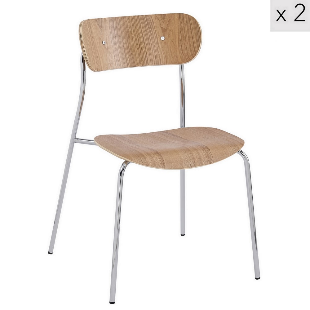Lot de 2 chaises de salle à manger industrielles en bois de frêne