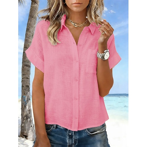 Per donna Camicia di lino Camicia Estiva Camicia con Bottoni Bottoni Tinta unica Semplice Quotidiano Elegante Casual Manica Corta Collo ripiegato Top Regolari Ferie Uscire Abbigliamento da vacanza