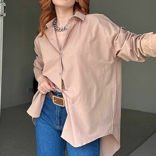 Per donna Camicia casual Camicia con Bottoni Blusa Patchwork Bottoni Tinta unica Semplice Quotidiano Elegante Classico Manica Lunga Collo ripiegato Top Regolari Ferie Abbigliamento mare Abbigliamento