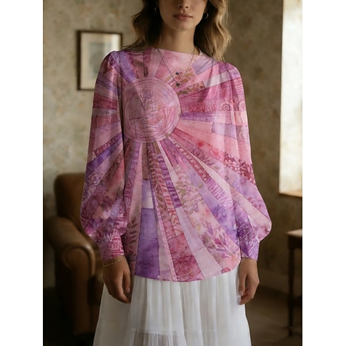 Per donna Camicia Camicia casual Blusa Stampato Grafico Geometrico Bohemien Elegante Classico Manica Lunga Asimmetrico Top Regolari Quotidiano Ferie Uscire Blu Rosa Viola Arancione Marrone Estate