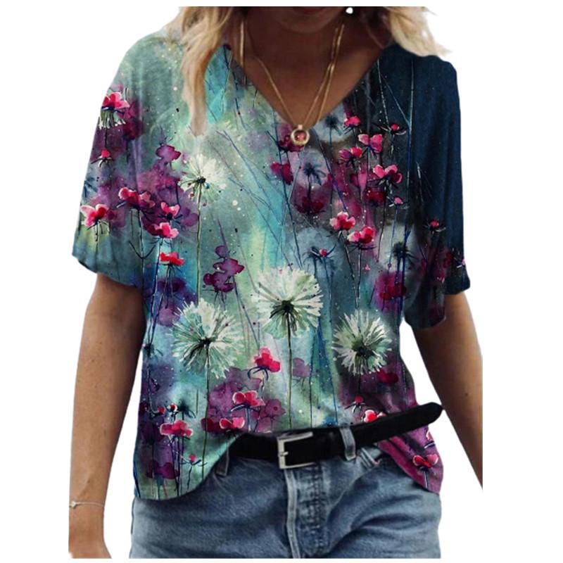 Zomer Vierzijdig Pop Trend Dameskleding Rendering 3D Digitaal Printen Sexy V-Hals Dames T-Shirt Aan cm