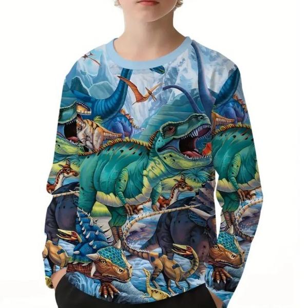 Spring and Autumn Round Neck 3D Cartoon Dinosaurs Printed Top Fashionable Casual Long Sleeved Children's Boy T-shirts cm