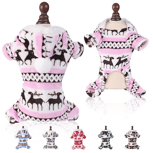 pigiama natalizio per cani - rosso tuta bianca con fiocco di neve e renna per animali domestici - comodo capo di flanella per le feste per cani di piccola taglia