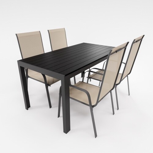 Lex Gartenmöbel Set Alu Tisch 5-tlg. 4x Stapelsessel Sitzgruppe Essgruppe Gartenset beige : Beige