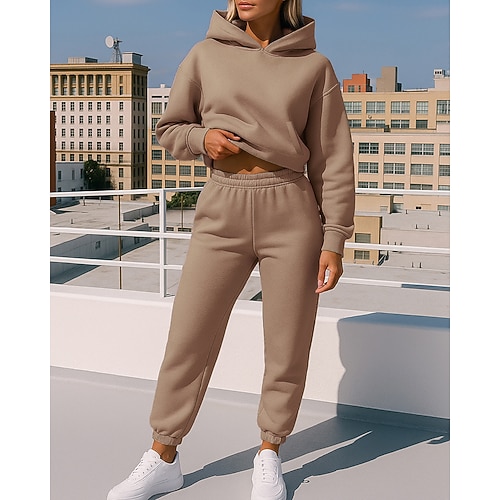 Per donna Tuta da 2 pezzi Felpa con cappuccio Lounge Set di tute da ginnastica Tinta unita Completo Abbigliamento Autunno Nero Bianco Allenamento All'aperto Viaggio Vita Alta Leggero Di tendenza