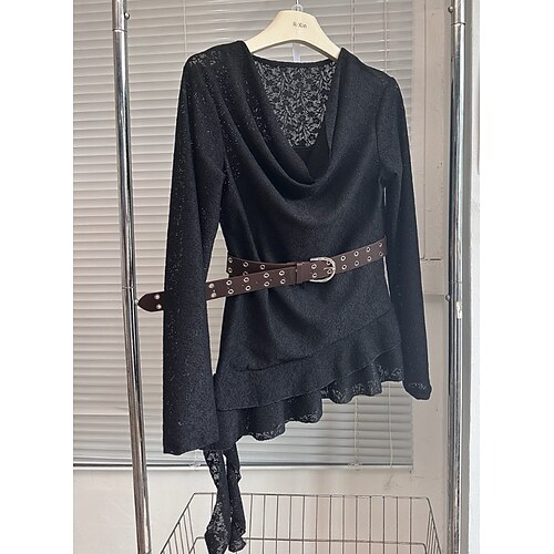 Per donna Camicia Blusa Semplice Casual Manica Lunga Girocollo Top Regolari Quotidiano Uscire Pizzo Bianco Estate