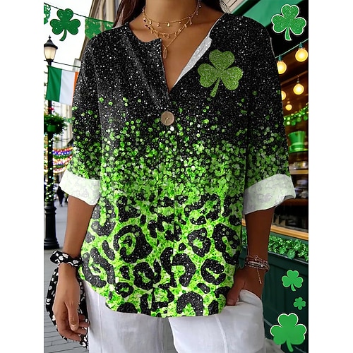 Festa di San Patrizio Per donna Camicia Grafico Trifoglio Quotidiano Manica Lunga Scollo a V Top Regolari Quotidiano Ferie Stampato Nero Verde Estate Primavera