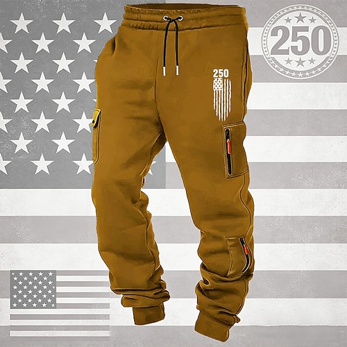 Per uomo Pantaloni da Tuta Cargo Pantaloni da tuta Joggers Pantaloni Coulisse Tasca Elastico in vita Bandiera Nazionale Comodità Traspirante Quotidiano All'aperto 250° anniversario dell'America